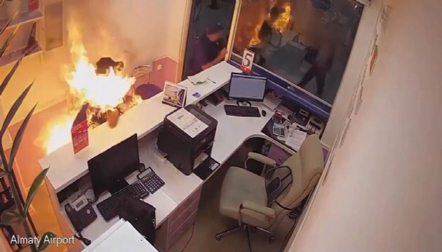 Dehşete düşüren anlar, Kazakistan’daki Almaty Havalimanı’nda bir seyahat acentesinde yaşandı.