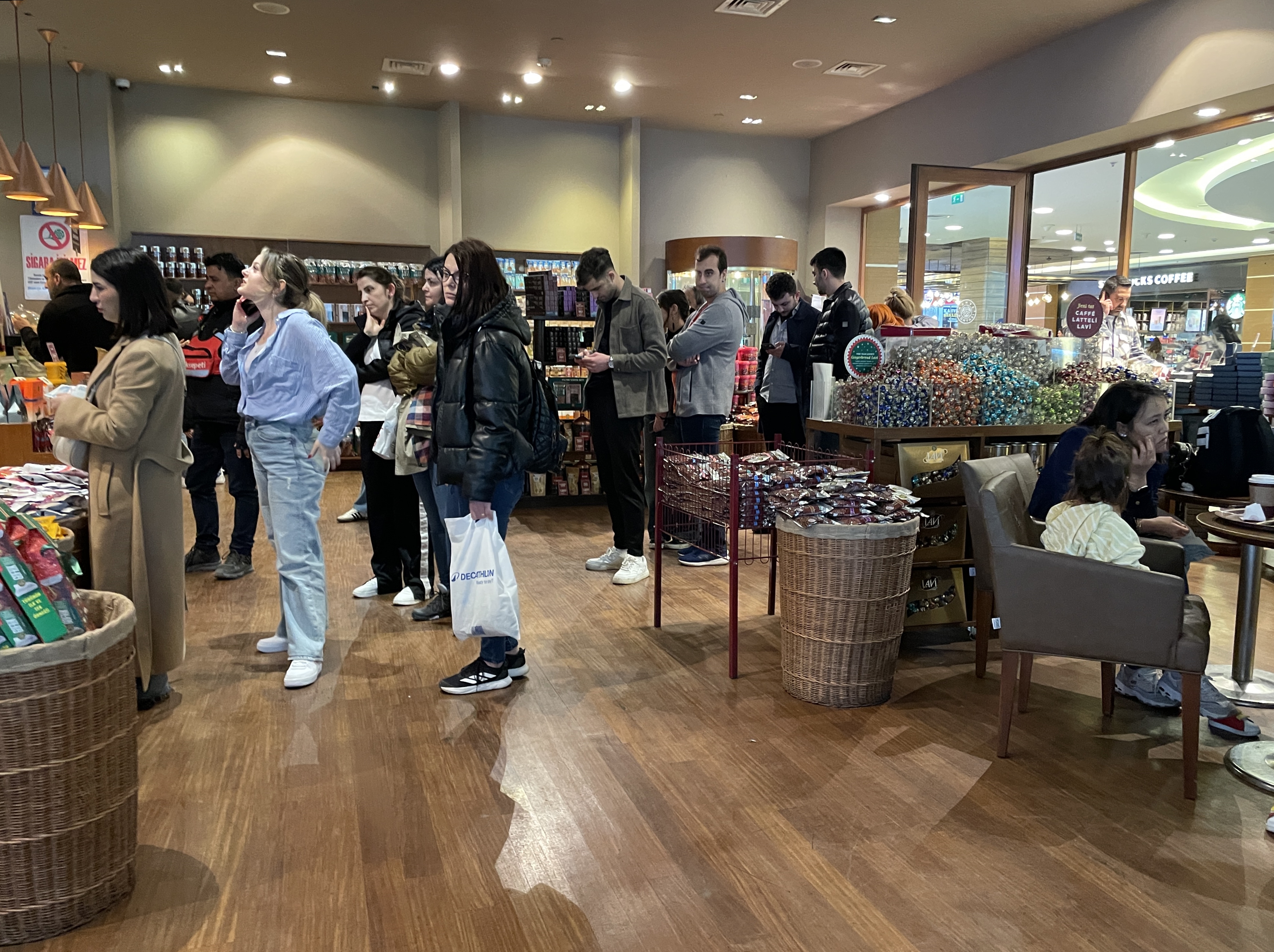 Vatandaşlar bazı iş yerlerinin kasalarında kuyruk oluştururken, kafe ve restoranlarda da vakit geçirdi.