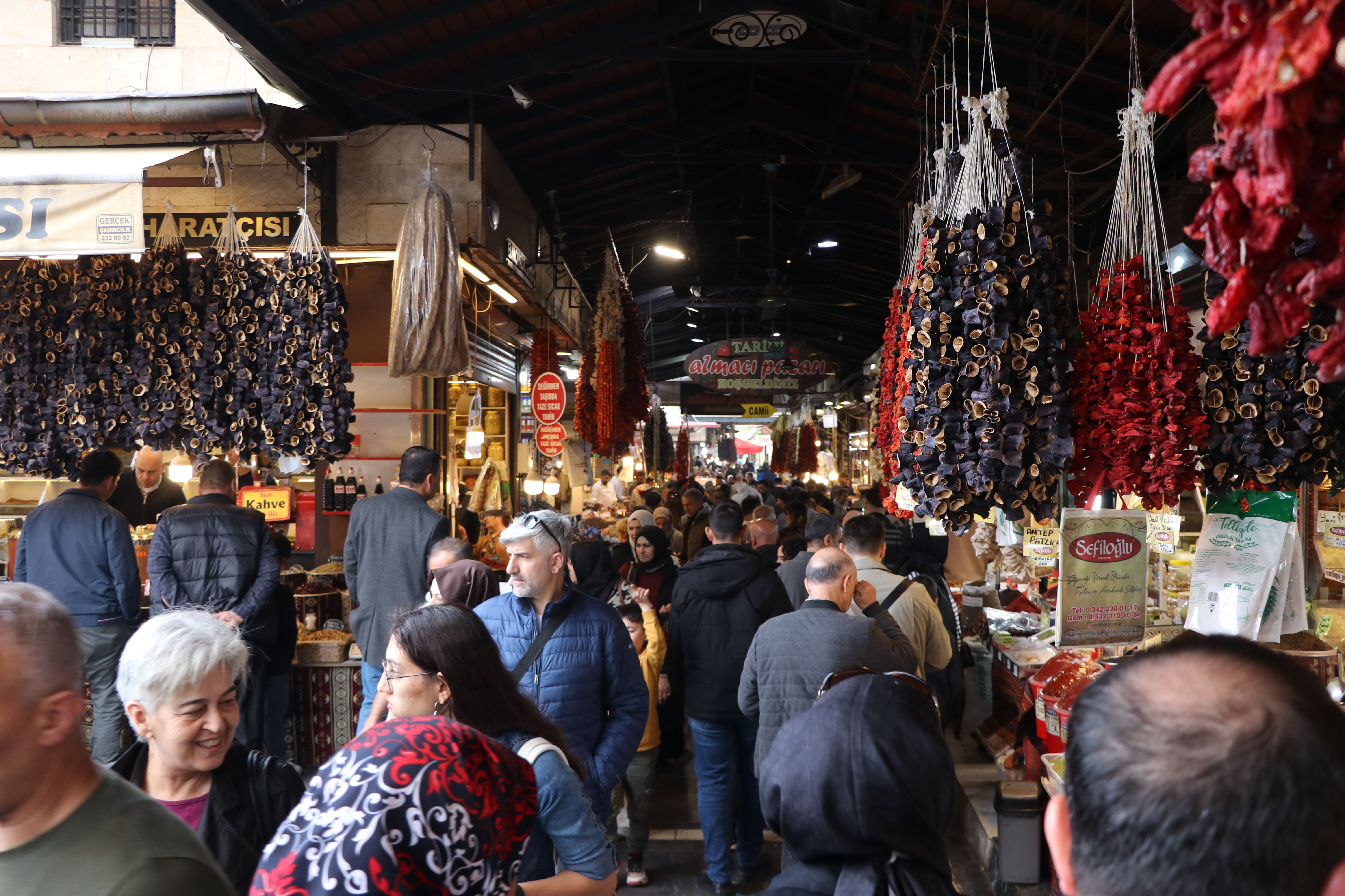 Gazi Caddesi, Hasan Paşa Hanı ve Yanık Çarşı gibi tarihi mekanları gezip, alışveriş yapan vatandaşların ciğer kebap salonlarında ve tatlı satışı yapılan iş yerlerinde yoğunluk oluşturduğu görüldü.