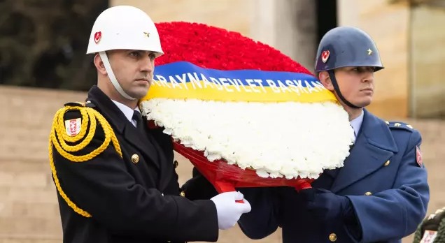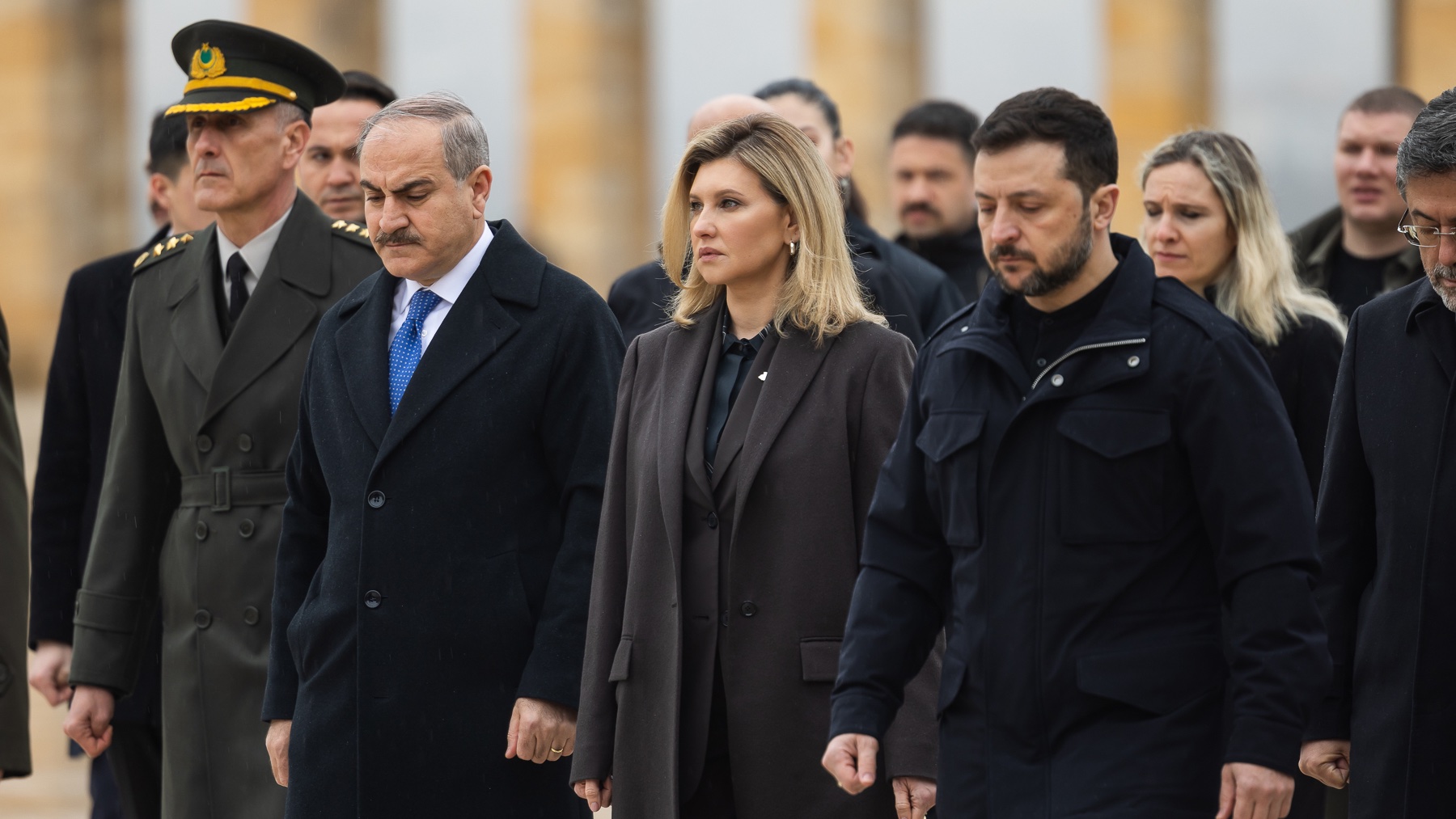 Zelenskiy, eşi ile birlikte Mustafa Kemal Atatürk'ün huzuruna çıkarak Anıtkabir özel defterini imzaladı.